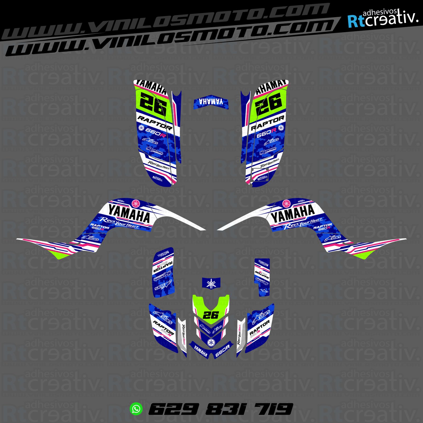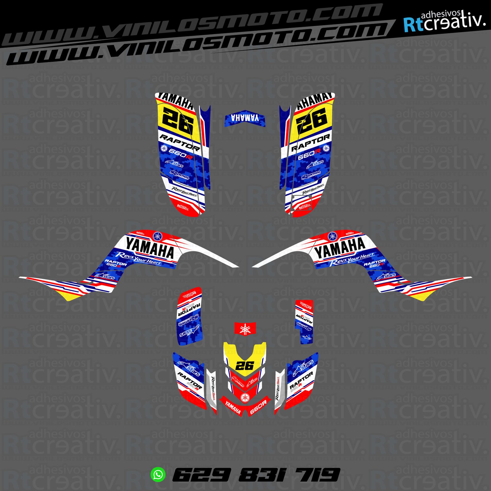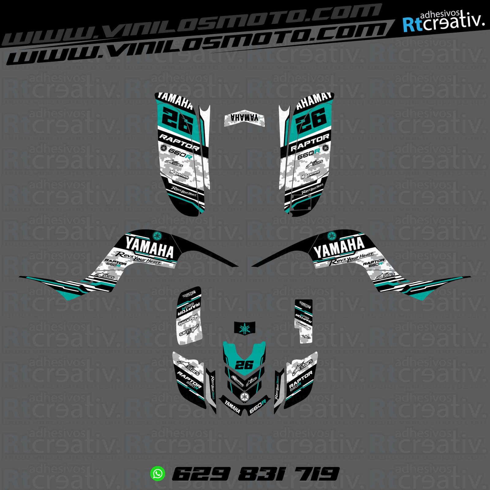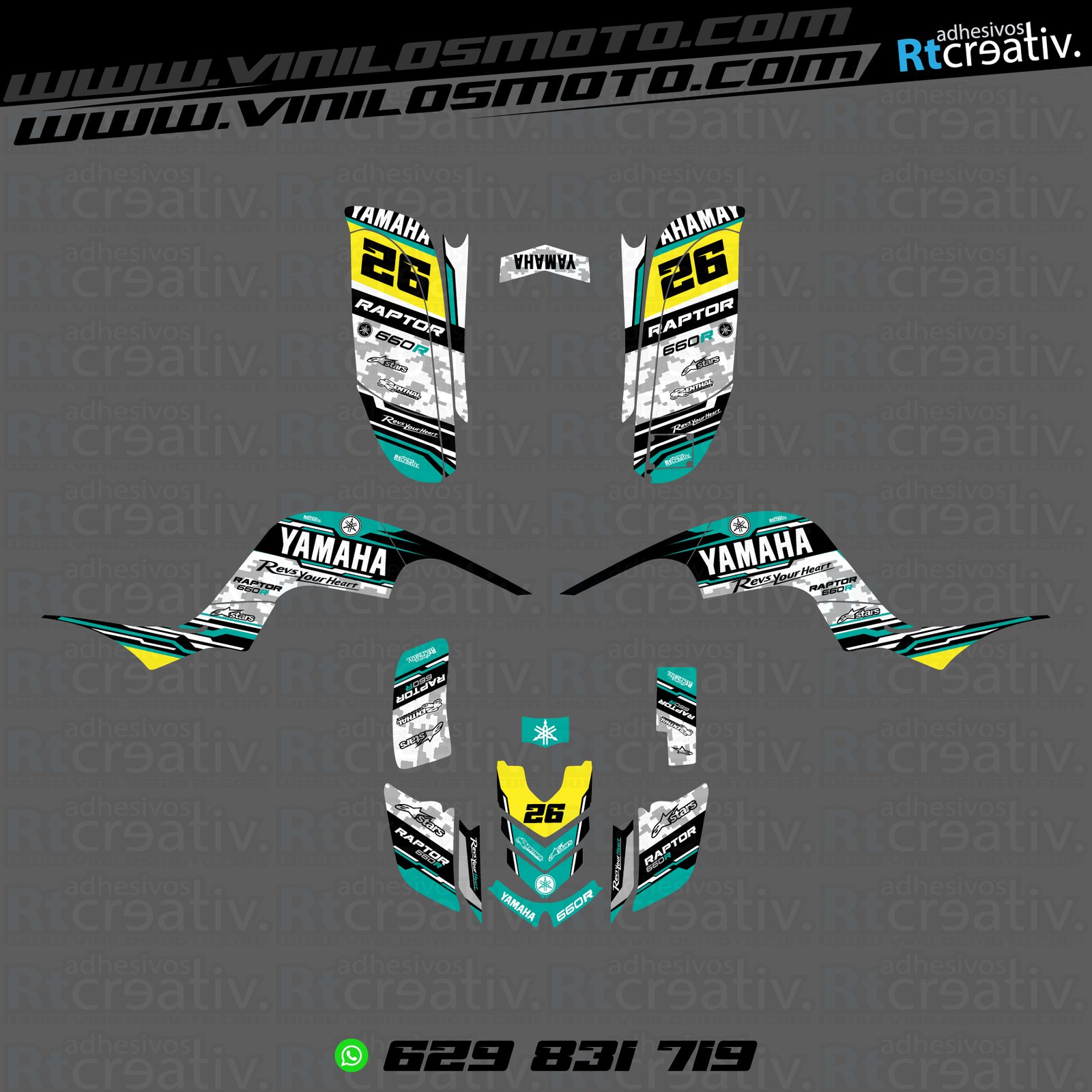 Yamaha Raptor 660 (Máximo forrado) diseño Rt007